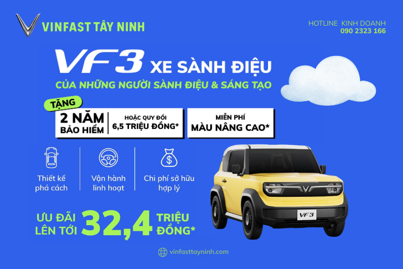 - VF 3 là lựa chọn tối ưu cho khách hàng muốn mua xe điện VinFast tại Tây Ninh để di chuyển hằng ngày, vừa tiết kiệm chi phí vừa thân thiện với môi trường.